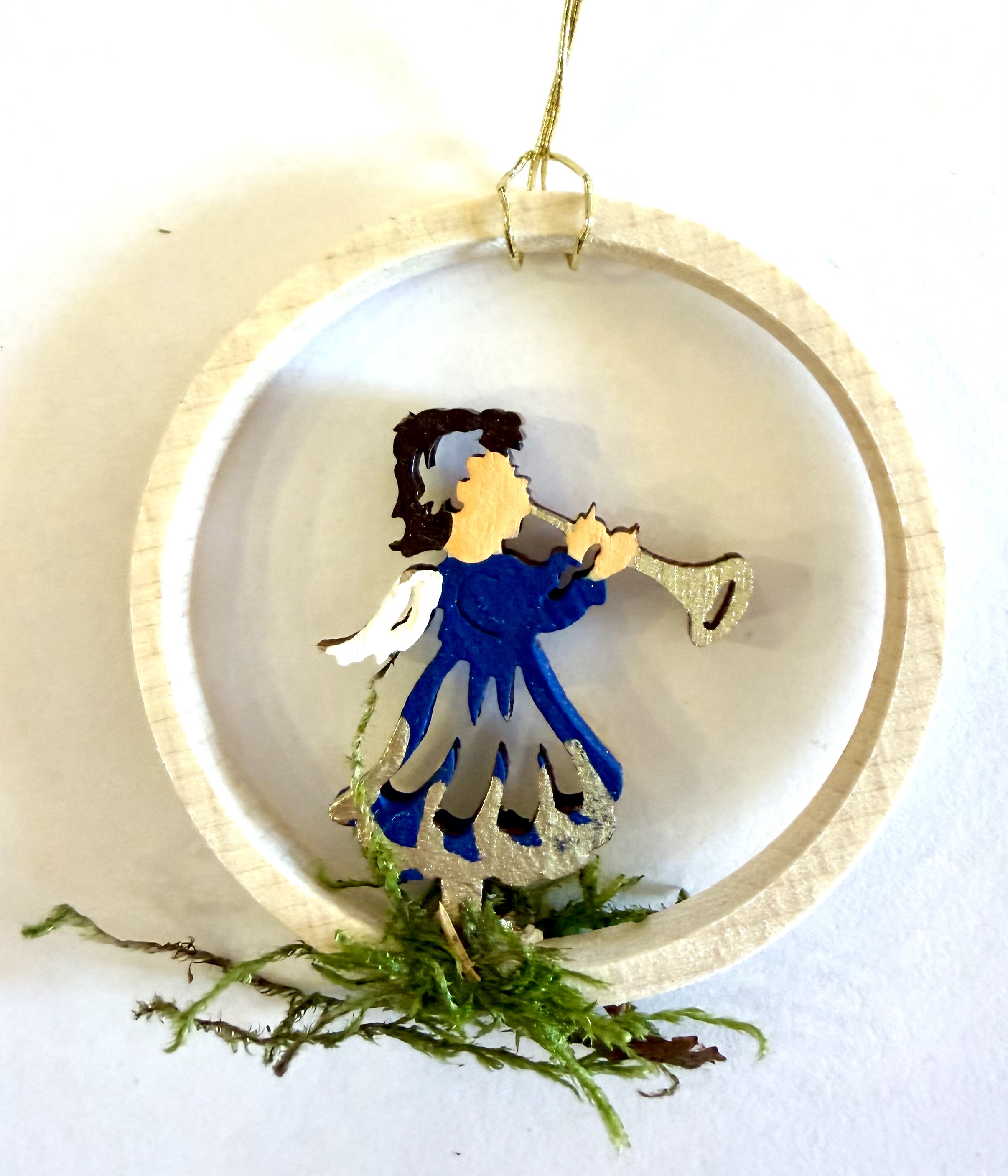 Baumbehang Engel Trompete, blau