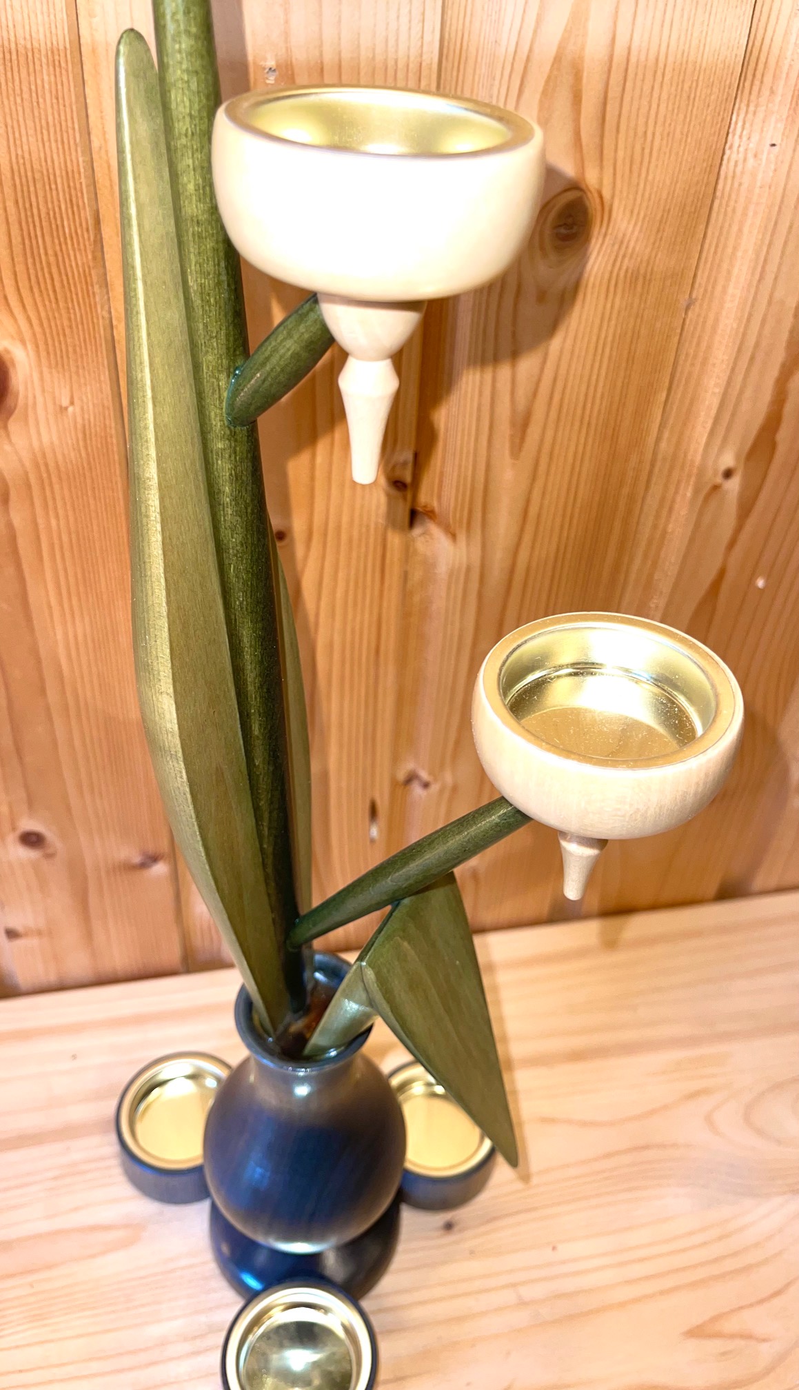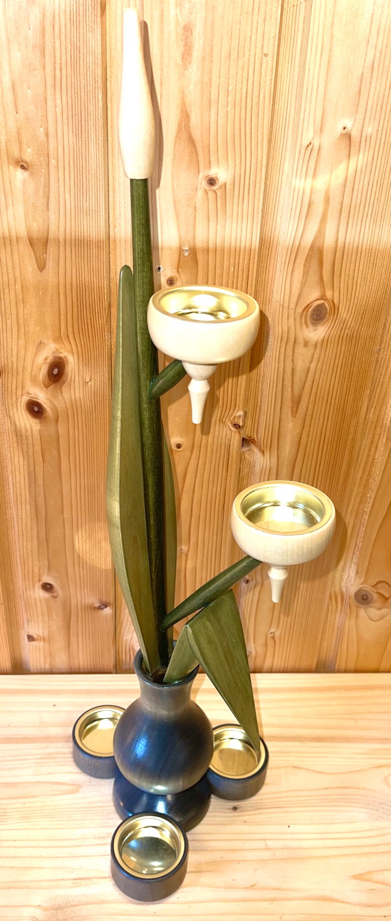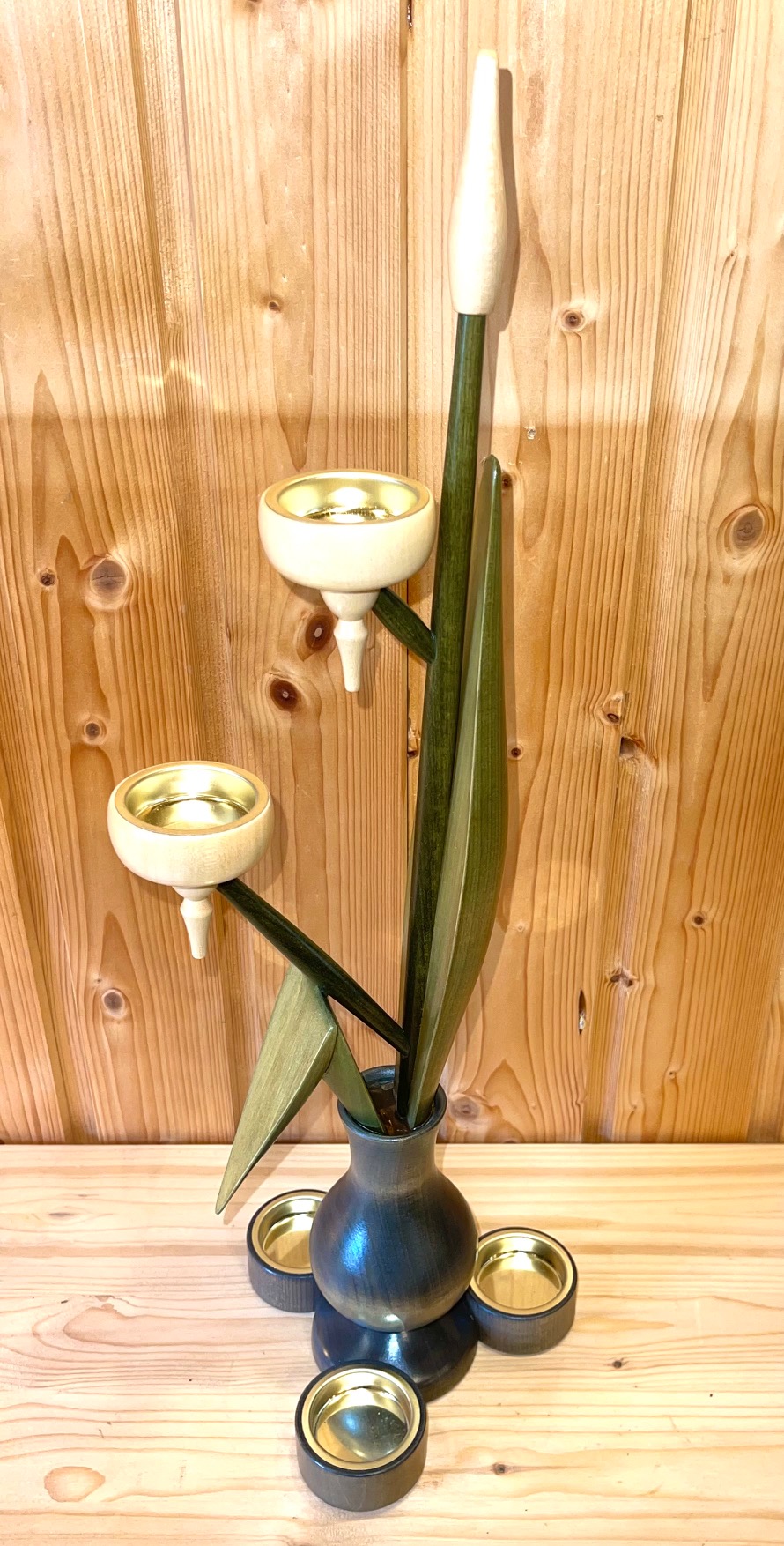 Teelichtleuchter Vase, Natur/graue Vase